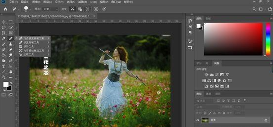 在使用污点修复画笔工具时,只需要确定需要修复的图像位置,调整好画笔大小,移动鼠标就会在确定需要修复的位置自动匹配,所以在实际应用时比较实用,而且在操作时也简单,是去除水印和人像精修时常用的工具之一。首先我们先打开一张带有水印的素材,如下图